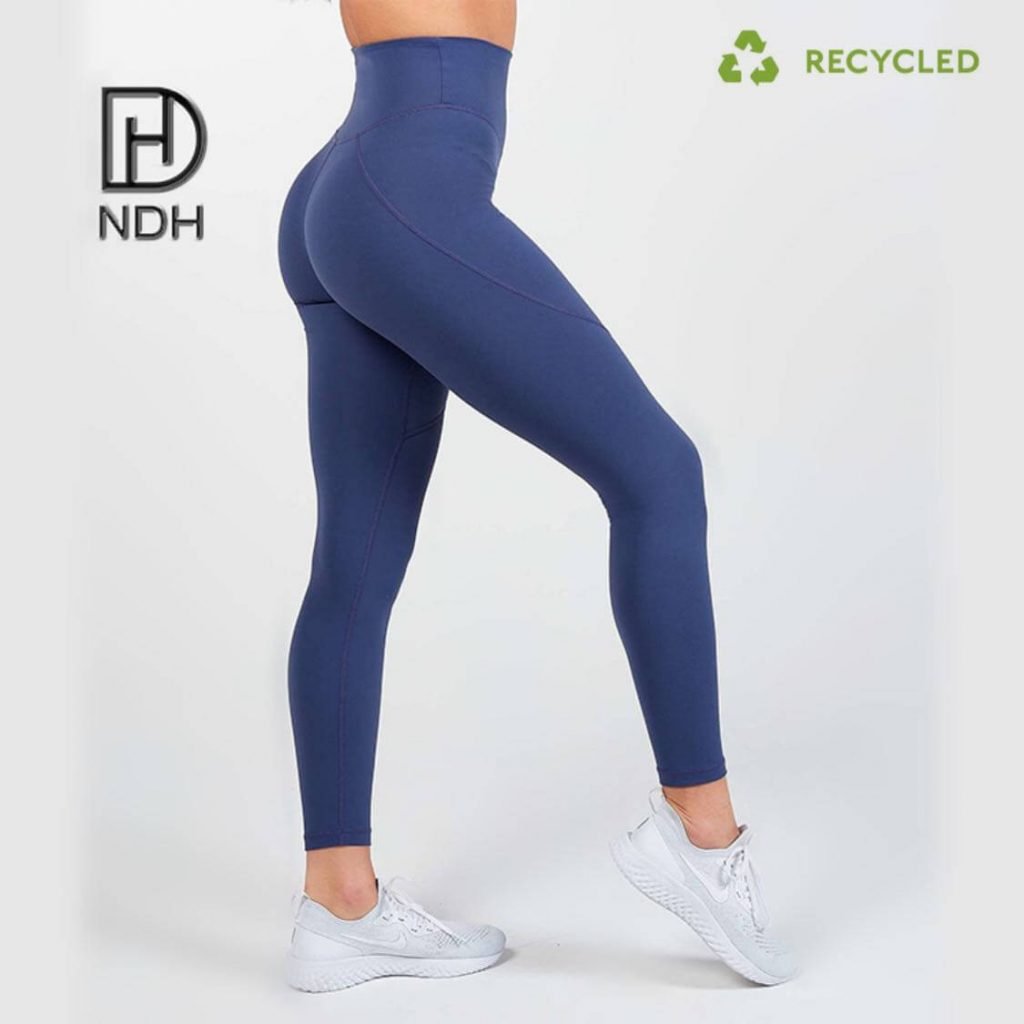 Navy Color High Waisted leggings made from Recycle Polyester Fabric, Interlock seam with bonding finishing This will be your ready to go apparel for weight lifting.
